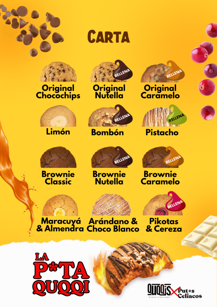 Inicio / Packs / Definitivo: 16 Quqqis a tu elección Definitivo: 16 Quqqis a tu elección50.00€ Personaliza tu pack y disfruta de tus dulces como más te guste. 1.280gr aprox. 3,12 €/ud Imagen Producto Cantidad Quqqis Original Chocochips La clásica galleta de nuestra masa original de Quqqis con nueces troceadas y muchas pepitas de chocolate negro. Quqqis Original Chocochips cantidad Quqqi Original Nutella Disfruta nuestra masa original rellena hasta los topes de auténtica Nutella. Un placer fuera de este mundo. Quqqi Original Nutella cantidad Quqqi Brownie Brownie de chocolate recubierto de una capa caramelizada y un interior meloso de chocolate intenso que no te dejará indiferente. Sin existencias Quqqi Brownie cantidad Quqqi Brownie Nutella ¡La crema de avellanas nunca fue tan irresistible! Nuestro brownieclásico de chocolate relleno de Nutella. Una mezcla digna de cualquier adicto al chocolate. Quqqi Brownie Nutella cantidad Quqqi Brownie Caramelo Salado Chocolate y caramelo: una dupla extraordinaria. ¡Déjate sorprender! Quqqi Brownie Caramelo Salado cantidad Quqqi Limón Quqqi hecha a base de zumo de limón natural recién exprimido y su ralladura, con un toque crujiente de almendra y glaseado con el propio zumo para equilibrar la explosión. Pura ambrosía. Quqqi Limón cantidad Quqqi Pistacho Quqqi Pistacho cantidad Quqqi Bombón 75 gr aprox. Sin existencias Quqqi Bombón cantidad Quqqi Arándano 75 gr aprox. Quqqi Arándano cantidad Quqqi Pikotas Quqqi Pikotas cantidad Quqqi Kinder 75 gr aprox. Quqqi Kinder cantidad Quqqi Lacasitos 75 gr aprox. Quqqi Lacasitos cantidad Quqqi Turrón 75 gr aprox. Quqqi Turrón cantidad Quqqi Noir Quqqi Noir cantidad Quqqi Buena Quqqi Buena cantidad ¿Quieres personalizar tu tarjeta? 20 palabras como máximo (opcional) Definitivo: 16 Quqqis a tu elección cantidad Añadir al carrito Categoría: Packs Productos relacionados Gocho: 10 Quqqis a tu elección 32.00€ Seleccionar opciones Combo: 6 Quqqis a tu elección 21.00€ Seleccionar opciones Snack: 4 Quqqis a tu elección 14.00€ Seleccionar opciones Épico: 12 Quqqis a tu elección 38.00€ Seleccionar opciones